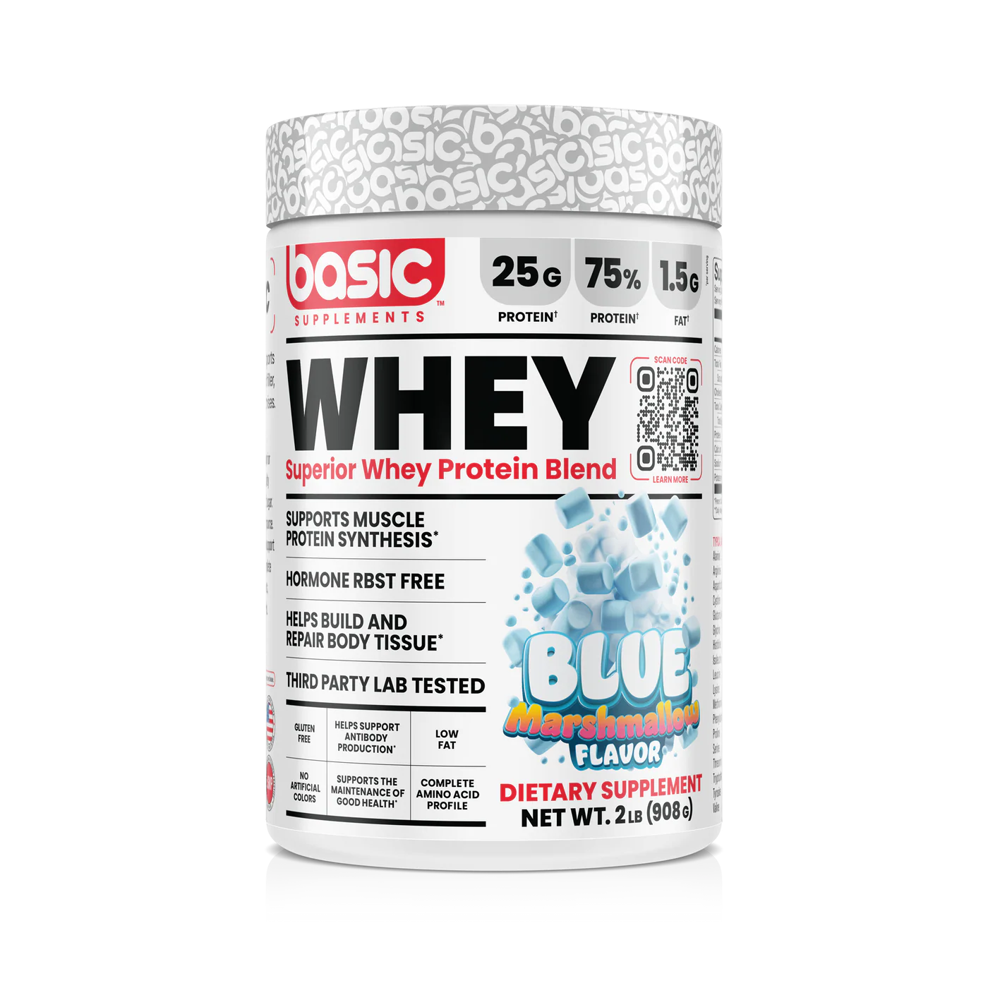 Basic Whey Protein 2LB is a high-quality whey protein blend designed for post-workout recovery, muscle support, and daily protein intake. On the official Basic Supplements product page, the brand describes it as Basic Superior Whey Protein Blend, made to help build muscle, recover quickly, and support overall fitness with a simple “no-B.S.” approach.
