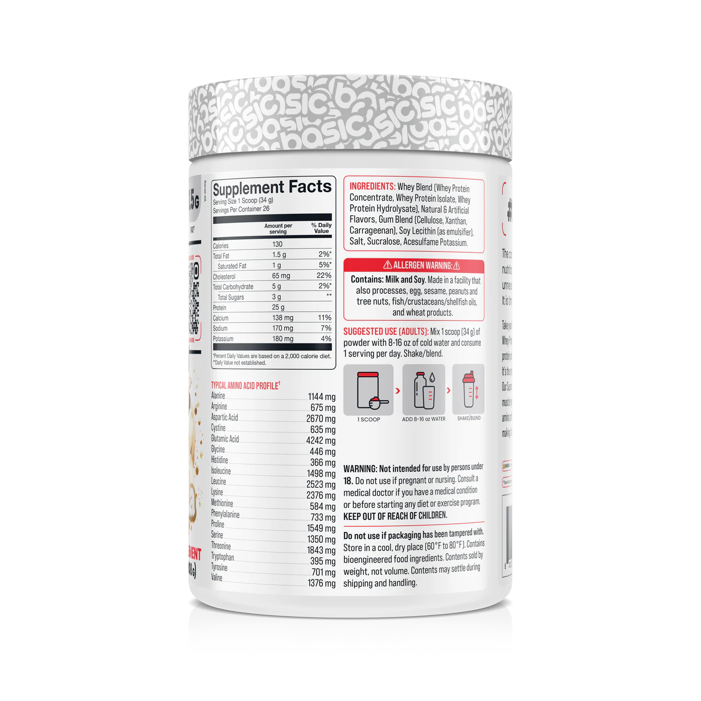 Basic Whey Protein 2LB is a practical everyday protein powder for gym-goers and active adults who want a blend of different whey sources instead of a single protein type. The official product page states that the formula contains a whey blend of whey protein concentrate, whey protein isolate, and whey protein hydrolysate, giving it a complete amino acid profile and easy mixability.