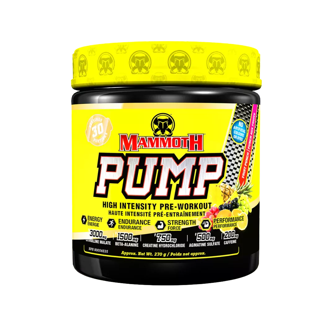 MAMMOTH PUMP POWDER 270G 30SRV is a pre-workout formula designed to support pumps, energy, and power before training. On the official Mammoth Supplements site, the product is described as a high-performance pre-workout that includes a full clinical dose of Creatine HCl to support strength, ATP production, and muscle recovery.