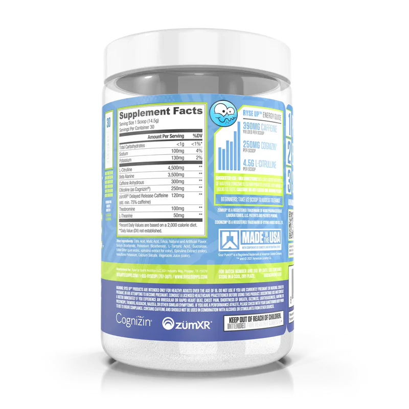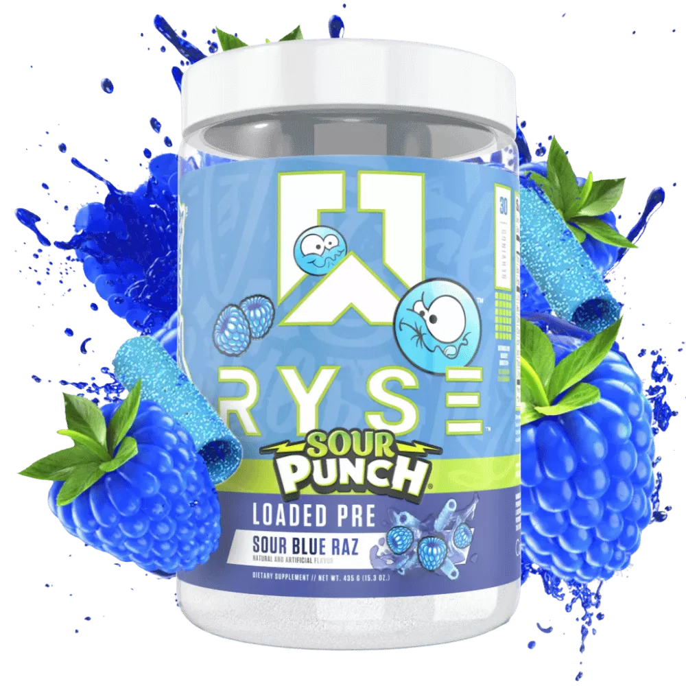 RYSE Loaded Pre V3 Sour Punch Blue Raz is a high-performance pre-workout built to support pump, energy, strength, and focus before training. The official RYSE Loaded Pre page lists Sour Punch® Sour Blue Raz as one of the flavor options, and retailer listings confirm the 30 servings format for this flavor.