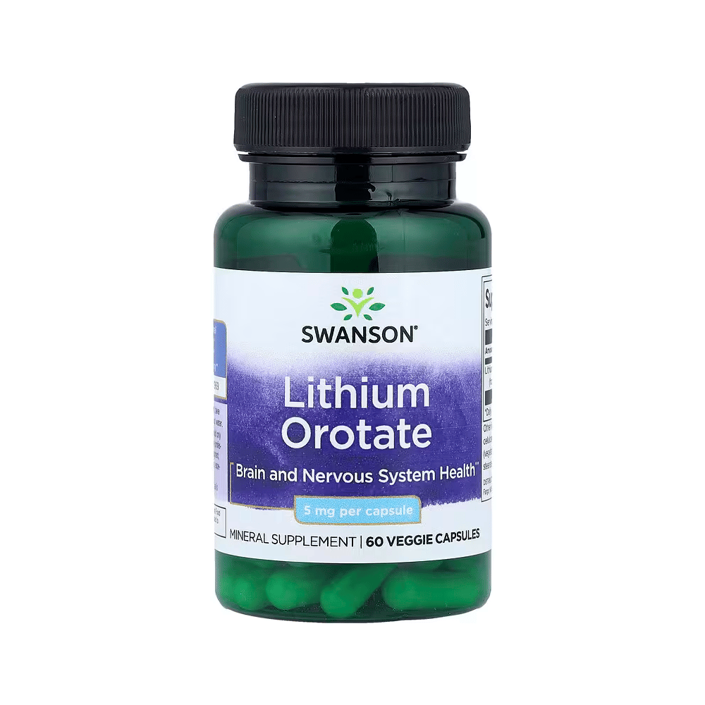 Lithium (as lithium orotate) is a trace mineral used by some for mood and calm support. Because lithium can interact with medications, use with extra care.