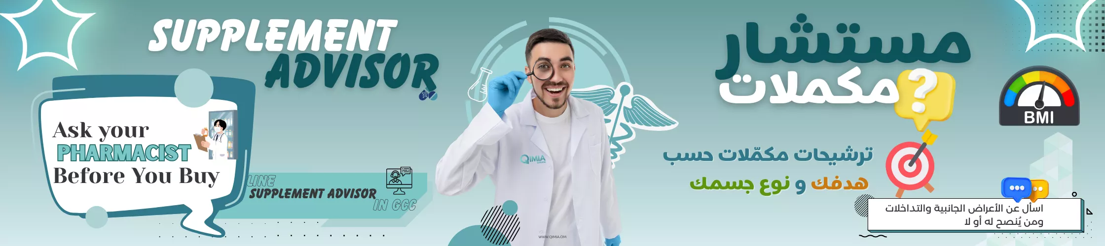 Qimia offers a free pharmacist-guided supplement chat so you can choose the right product type and use it correctly before purchasing. This page is built for customers in the Gulf region, including the UAE, Oman, Saudi Arabia (KSA), and Qatar.