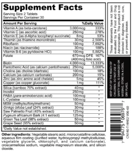 Pantothenic Acid (as calcium pantothenate) — 250 mg (5,000%)